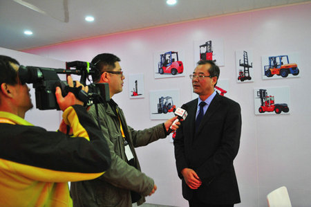 展會(huì)期間,集團(tuán)公司董事長張德進(jìn),就產(chǎn)業(yè)轉(zhuǎn)型升級(jí),對(duì)中國和國際工業(yè)車輛未來發(fā)展及展望,和對(duì)本次展會(huì)的總體感受等方面,欣然接受了央視二套、央視國際頻道、央視新聞?lì)l道、上海東方衛(wèi)視、安徽衛(wèi)視、工程機(jī)械周刊、新民晚報(bào)、東方早報(bào)、文匯報(bào)等國內(nèi)主流媒體在合力展位的現(xiàn)場采訪。中國工程機(jī)械工業(yè)協(xié)會(huì)秘書長蘇子孟、工業(yè)車輛分會(huì)秘書長張潔參觀合力新品時(shí),高度評(píng)價(jià)了安徽合力多年來實(shí)現(xiàn)的快速發(fā)展,為引領(lǐng)中國民族叉車工業(yè)的發(fā)展所做出的重要貢獻(xiàn)。