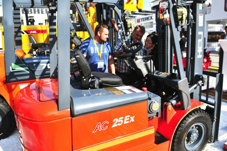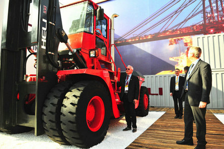 本屆展會(huì),合力以“合力品牌、企業(yè)實(shí)力、節(jié)能環(huán)保、高端產(chǎn)品”為主題,攜多款工業(yè)車輛和工程機(jī)械新產(chǎn)品閃耀申城、激情綻放。這其中既有節(jié)能環(huán)保的LNG集裝箱空箱堆高機(jī),動(dòng)力強(qiáng)勁的新款25噸重型內(nèi)燃叉車,更有代表國內(nèi)工業(yè)車輛最高技術(shù)水準(zhǔn)和噸位級(jí)別的46噸重型內(nèi)燃叉車、集裝箱正面吊運(yùn)機(jī)震撼登場。同時(shí)外觀別致、造型新穎的G系列2.5噸電動(dòng)叉車,G系列7噸內(nèi)燃叉車,全新升級(jí)的新一代H系列內(nèi)燃叉車,轉(zhuǎn)向靈活的2噸托盤搬運(yùn)車,2.5噸電動(dòng)防爆叉車也同步亮相。