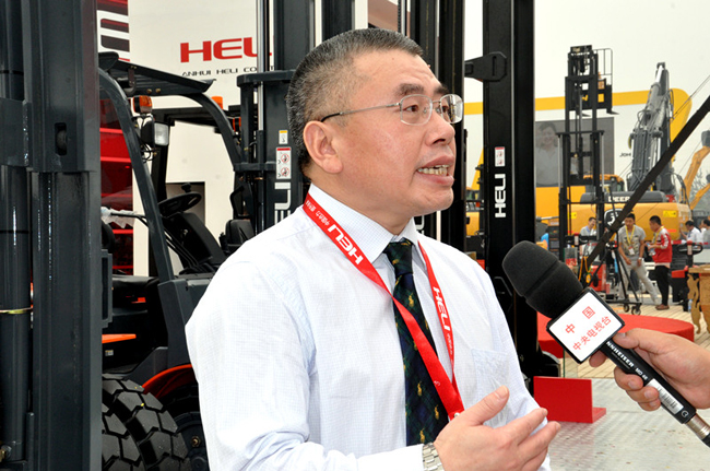 9月22日上午9:30,伴隨著一陣極富民族特色、強(qiáng)勁有力的“奧運(yùn)缶”敲擊聲,占地1000多平方米、裝扮別致,大氣磅礴的安徽合力股份有限公司S225展位正式開幕,以包容、開放、友善的胸懷喜迎海內(nèi)外賓朋好友。在新產(chǎn)品發(fā)布儀式上,中國(guó)工程機(jī)械工業(yè)協(xié)會(huì)祁俊會(huì)長(zhǎng),安徽叉車集團(tuán)總經(jīng)理?xiàng)畎矅?guó),安徽合力副總經(jīng)理、合力裝載機(jī)分公司總經(jīng)理張應(yīng)權(quán)等公司領(lǐng)導(dǎo)出席儀式并作現(xiàn)場(chǎng)致辭講話。新產(chǎn)品發(fā)布儀式后,工業(yè)車輛分會(huì)張潔秘書長(zhǎng)親臨展位參觀新品樣車,并同楊安國(guó)總經(jīng)理進(jìn)行深入交流。此外,來(lái)自中央電視臺(tái)、北京電視臺(tái)、安徽電視臺(tái)以及相關(guān)的行業(yè)媒體紛紛對(duì)楊安國(guó)總經(jīng)理進(jìn)行深度采訪。展會(huì)首日,國(guó)內(nèi)外眾多長(zhǎng)期支持、關(guān)注合力發(fā)展的客戶趕到合力展位參觀洽談。