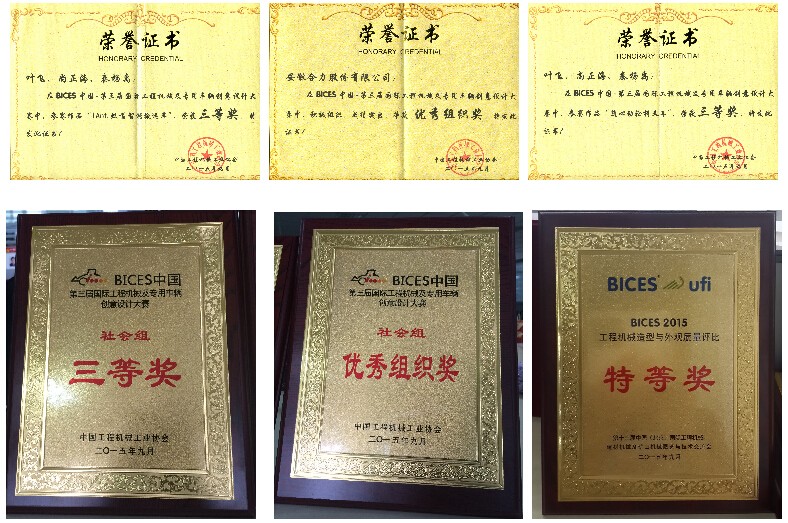 本次比賽社會(huì)組共有400多件作品,合力所有作品全部入圍,并且作品的質(zhì)量上乘。其中有兩件作品榮獲三等獎(jiǎng);成為本次大賽獲獎(jiǎng)作品最多的公司之一,榮獲賽事“優(yōu)秀組織獎(jiǎng)”;另外,公司RSH4532正面吊在所有參展產(chǎn)品中得到展會(huì)組委會(huì)一致肯定,獲得工程機(jī)械外觀造型及質(zhì)量評(píng)比“特等獎(jiǎng)”的殊榮。