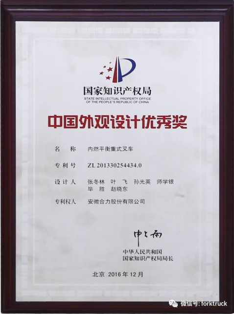 2月13日,2017年全省知識(shí)產(chǎn)權(quán)工作會(huì)議在合肥召開,會(huì)議總結(jié)了2016年度全省知識(shí)產(chǎn)權(quán)工作,交流知識(shí)產(chǎn)權(quán)工作經(jīng)驗(yàn),表彰先進(jìn),研究部署2017年度全省知識(shí)產(chǎn)權(quán)工作。會(huì)上為獲得第十八屆中國專利獎(jiǎng)的企業(yè)頒獎(jiǎng)、授牌,安徽合力申報(bào)的外觀專利《內(nèi)燃平衡重式叉車》獲得第十八屆中國外觀設(shè)計(jì)優(yōu)秀獎(jiǎng),公司研發(fā)部副部長張麗參加會(huì)議并代表企業(yè)上臺(tái)領(lǐng)獎(jiǎng)。